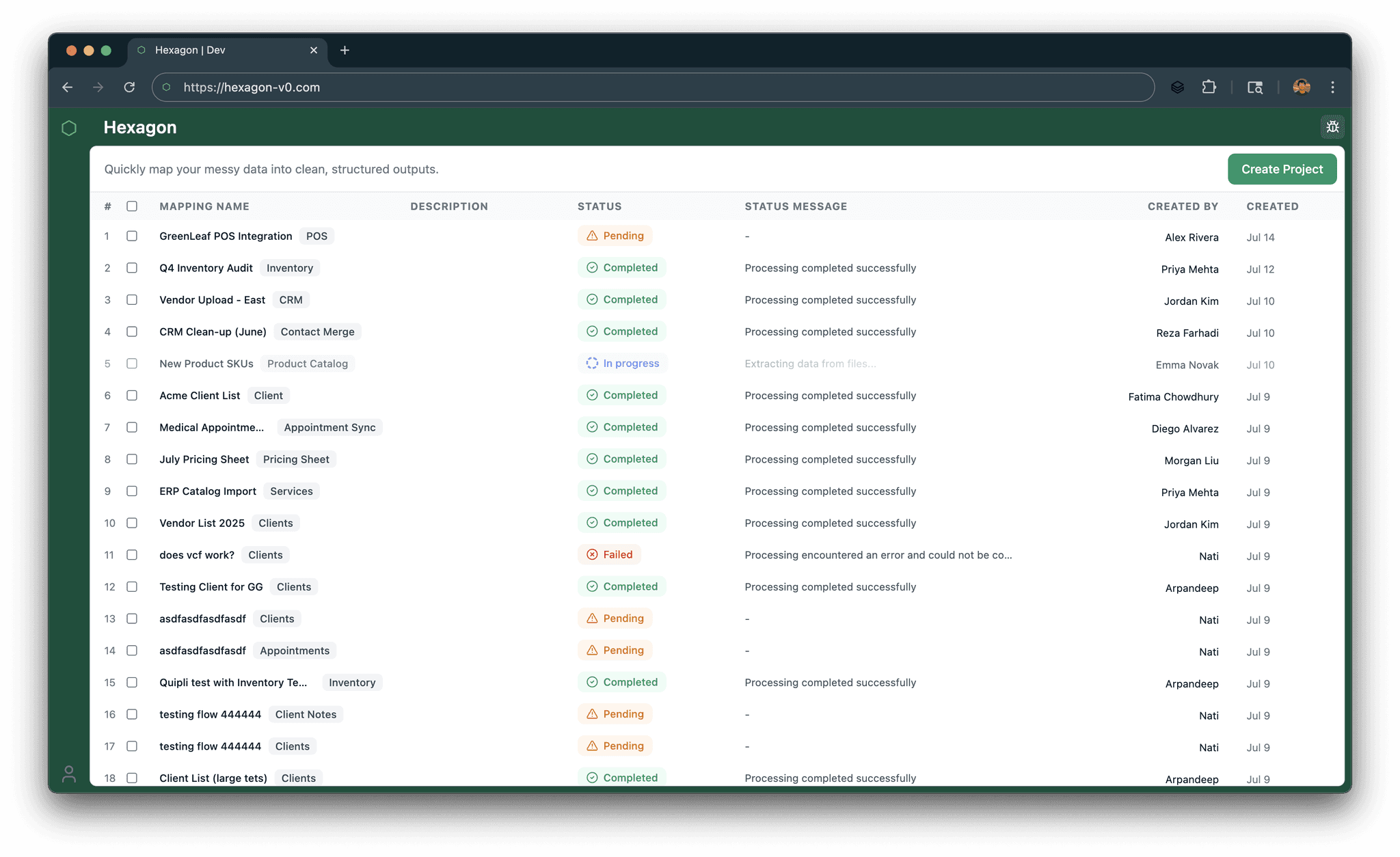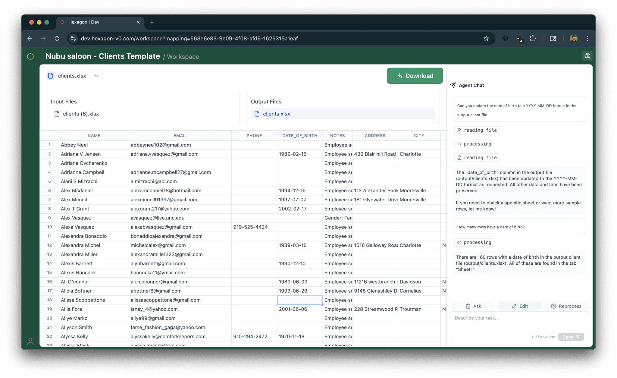 From spreadsheets to screenshots, we process any client data into structured records for your internal systems—automatically.